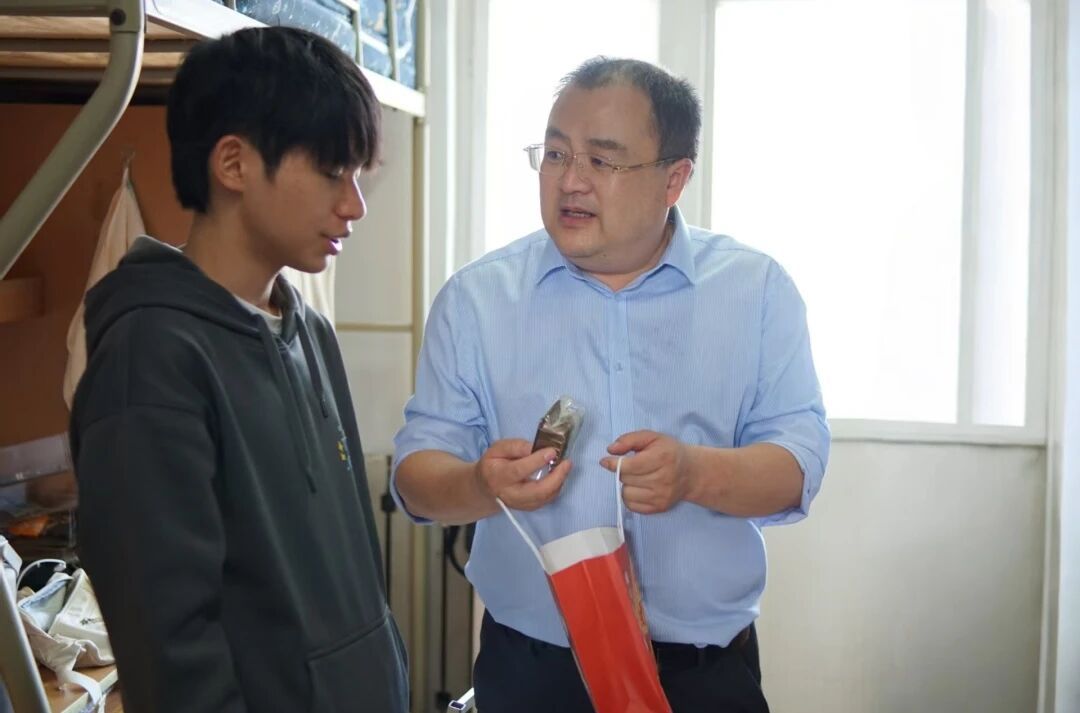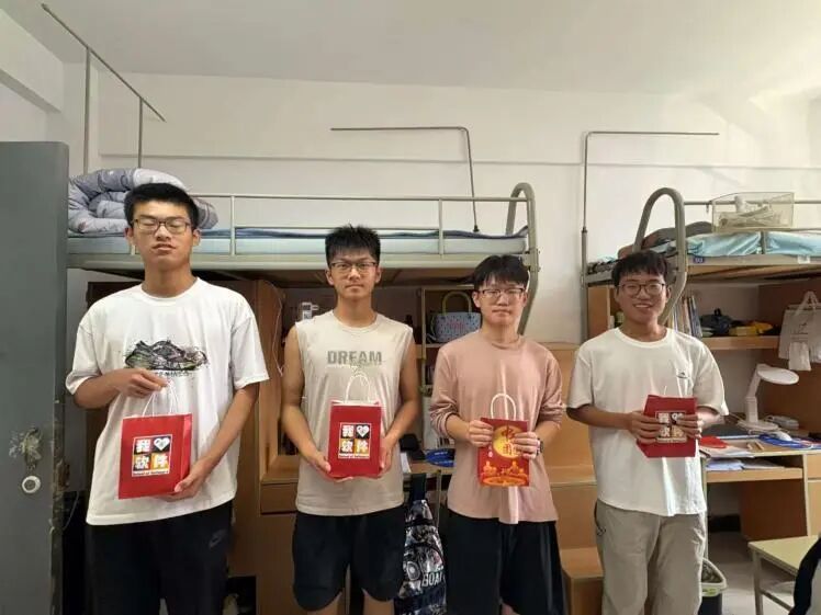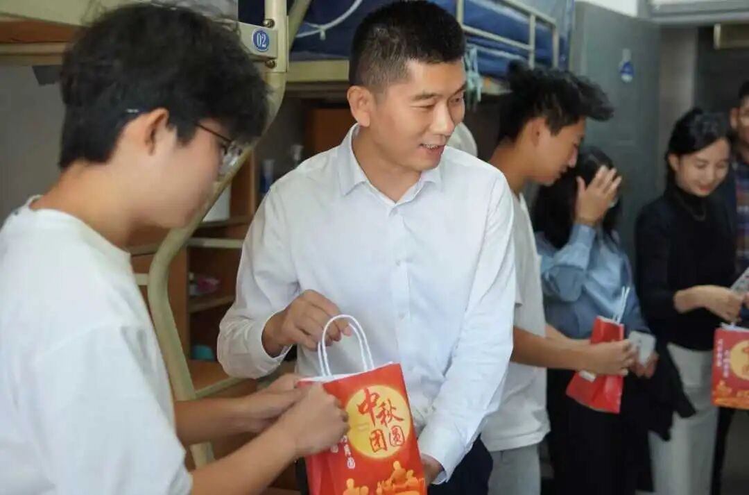 秋高气爽,学生宿舍里洋溢着热烈的节日氛围。学院领导亲手将满载情谊的学院限定月饼递到同学们手中,并与大家亲切交流,细致了解入学后的生活适应情况和学习需求。