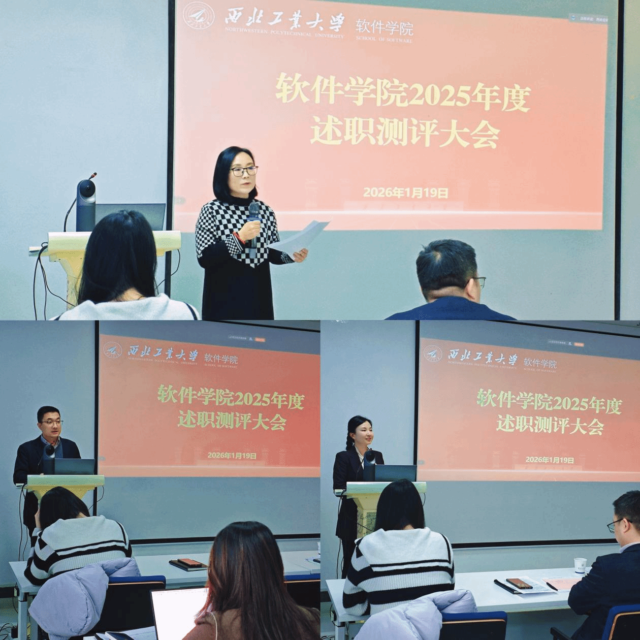 院长郑江滨从党建引领、人才培养、科学研究、师资建设、国际合作、组织保障等六方面系统总结了学院2025年度重点工作与成效并进行个人述职。李晗以“铸魂强基 赋能领航”为题,从理论武装、强基固本、党建引领等方面汇报了年度党委工作并进行个人述职。副院长马春燕、郭培荣及党委副书记陈博结合分管工作,分别进行述职。参会人员以无记名方式对学院领导班子成员进行民主测评和打分。